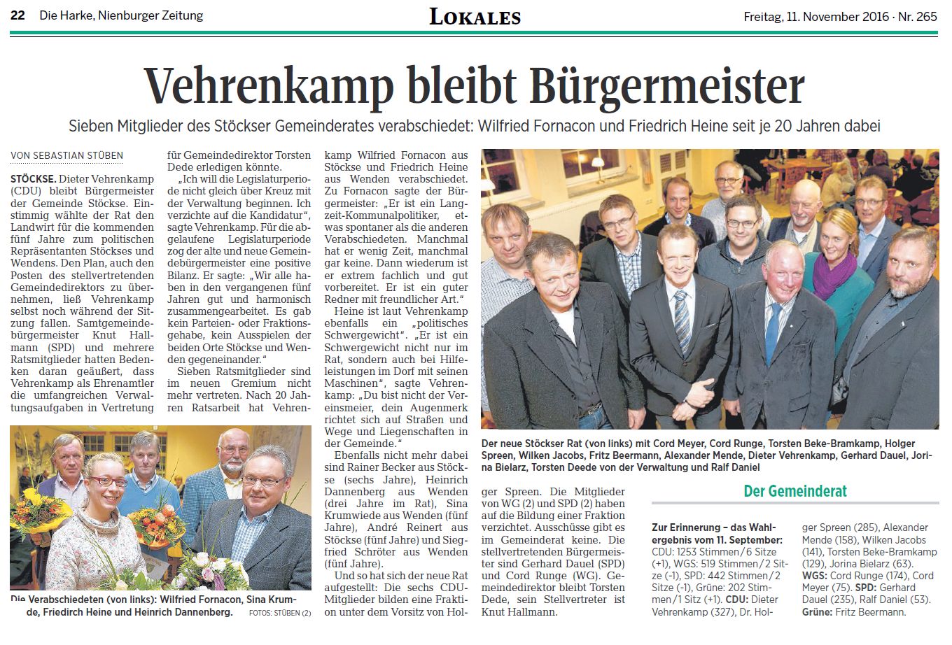 Bericht in der Lokalzeitung "Die Harke" vom 11.11.2016