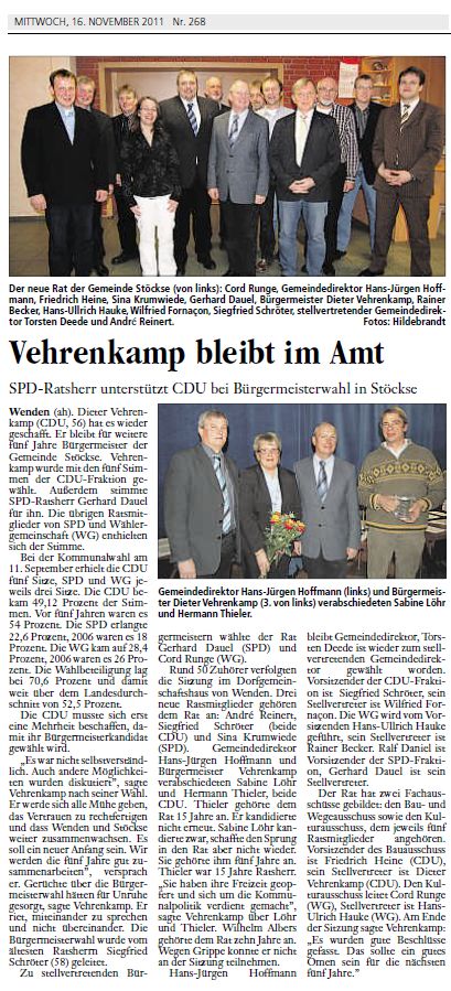 Bericht in der Lokalzeitung "Die Harke" vom 16.11.2011