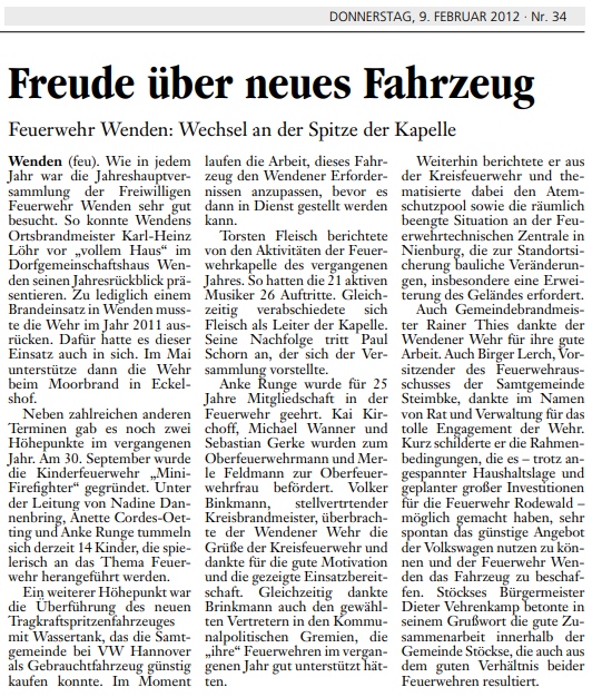 Bericht in der Lokalzeitung "Die Harke" vom 09.02.2012