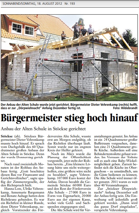 Bericht in der Lokalzeitung "Die Harke" vom 18.08.2012
