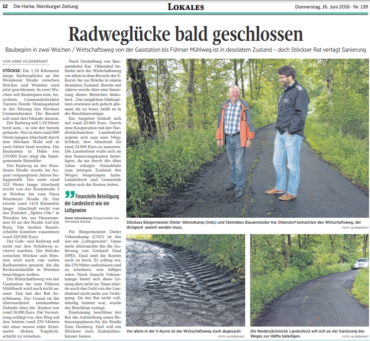 Bericht in der Lokalzeitung "Die Harke" vom 16.16.2016