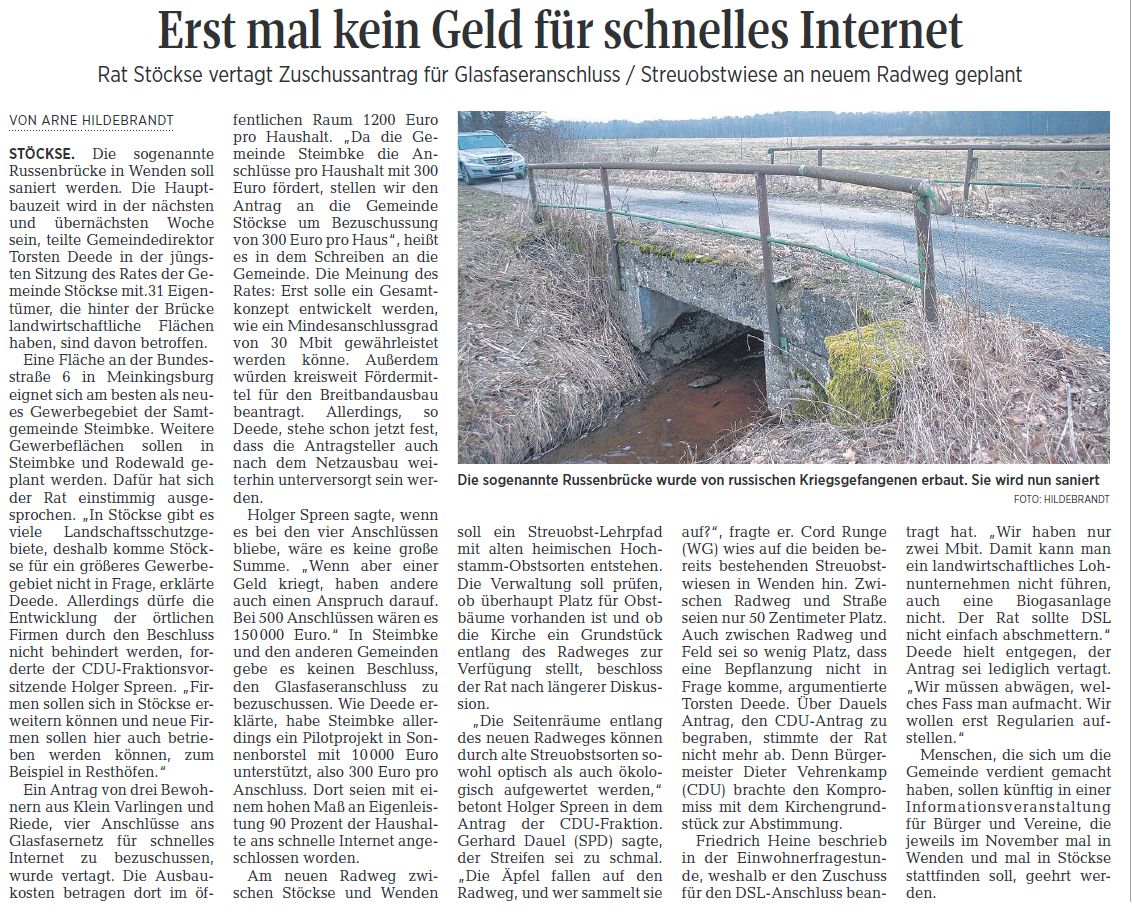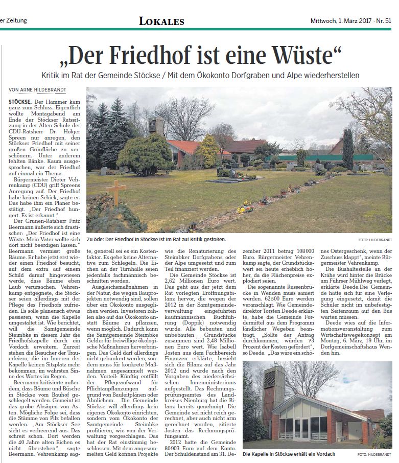 Bericht in der Lokalzeitung "Die Harke" vom 01.03.2017