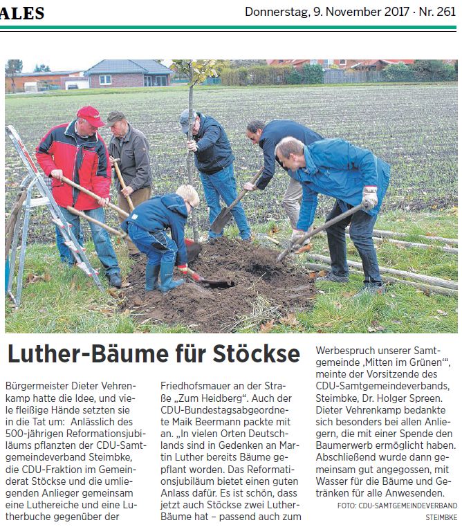 Bericht in der Lokalzeitung "Die Harke" vom 09.11.2017