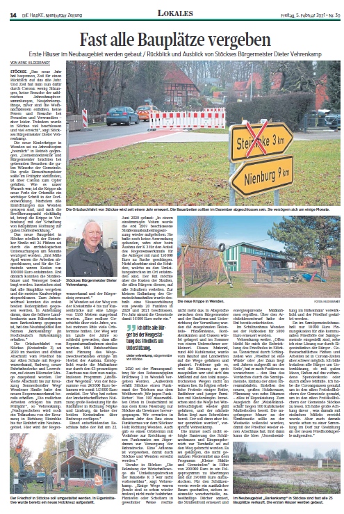 Bericht in der Lokalzeitung "Die Harke" vom 05.02.2021